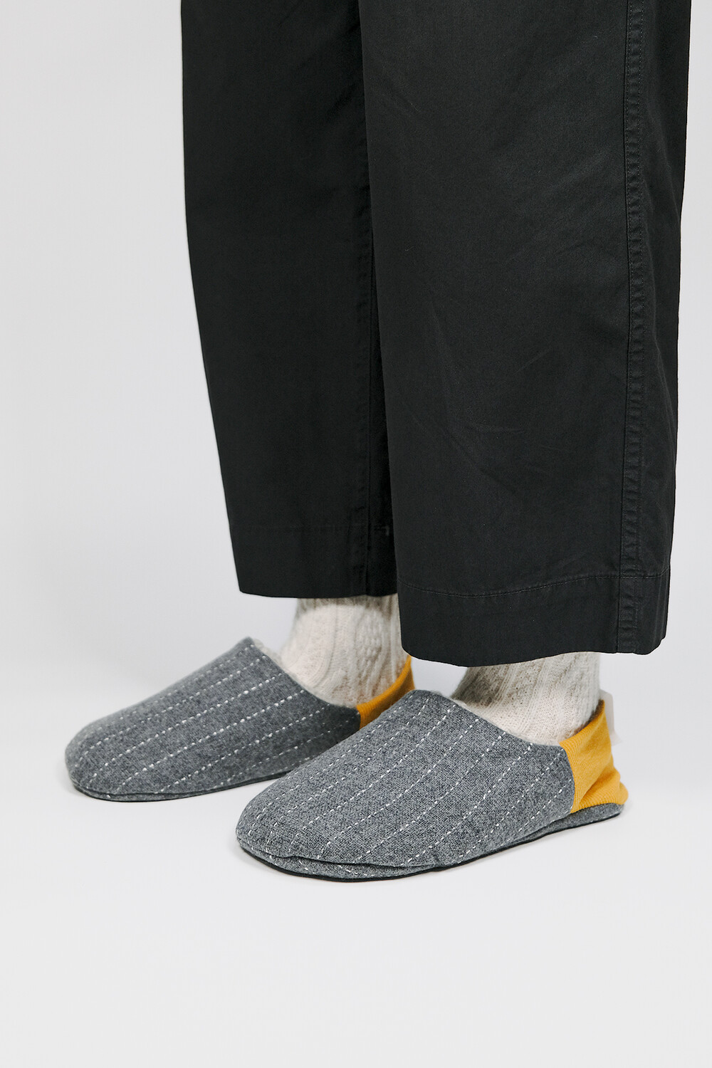 뒤꿈치의 골지 편직이 발을 부드럽게 감싸 양말처럼 편안한 착용감을 줍니다.